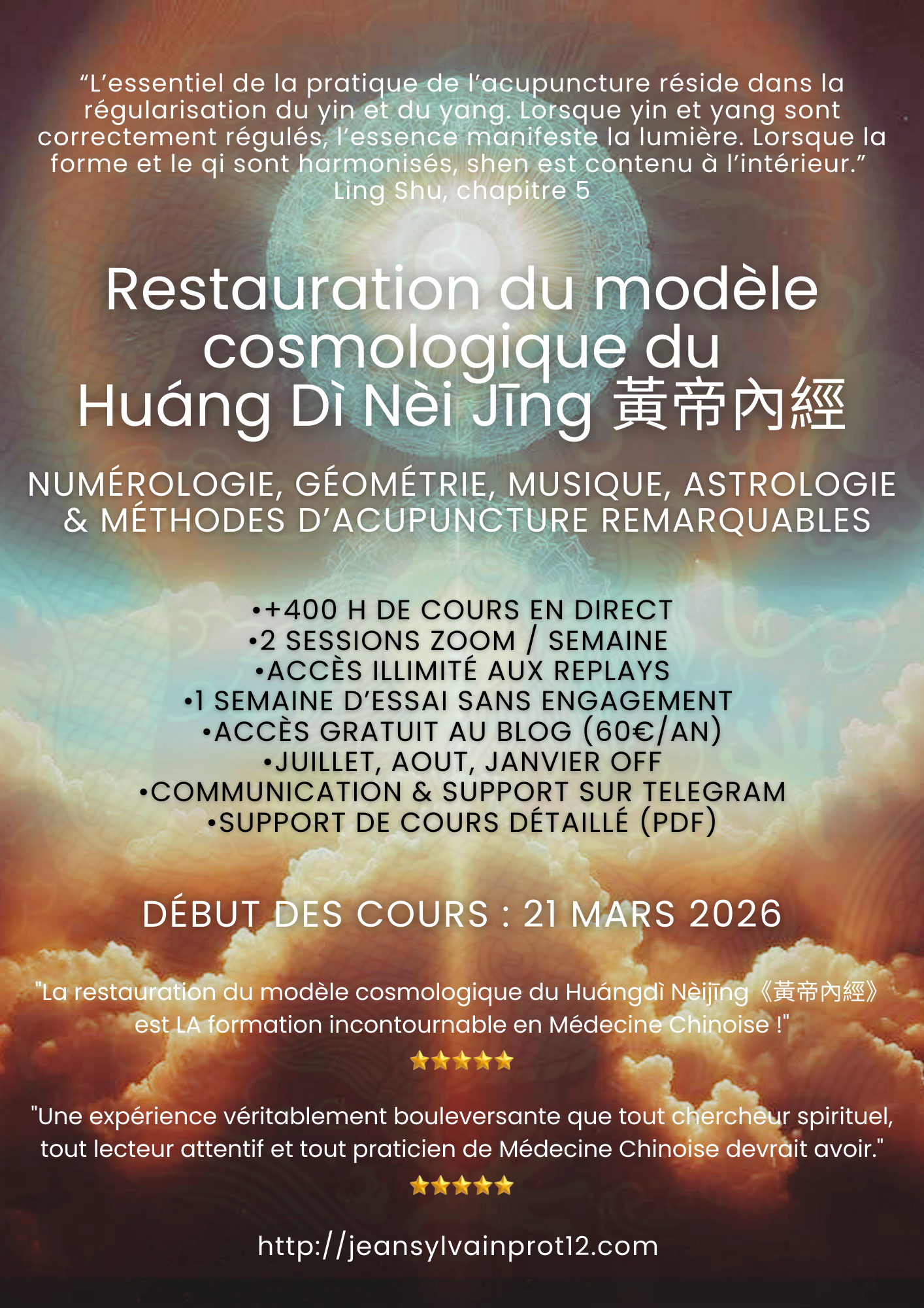 "La restauration du modèle cosmologique du Huángdì Nèijīng《黃帝內經》est LA formation incontournable en Médecine Chinoise !"