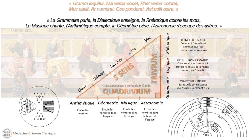 Dans cette perspective, le 易經 Yì Jīng apparaît comme une formalisation abstraite de lois naturelles issues de l’observation géométrique du monde. Le 黃帝內經 Huáng Dì Nèi Jīng transpose ces mêmes lois dans le champ du vivant. La cosmologie, la musique, le calendrier et la médecine procèdent alors d’une même rationalité, fondée sur l’harmonie des proportions et la régulation des transformations.